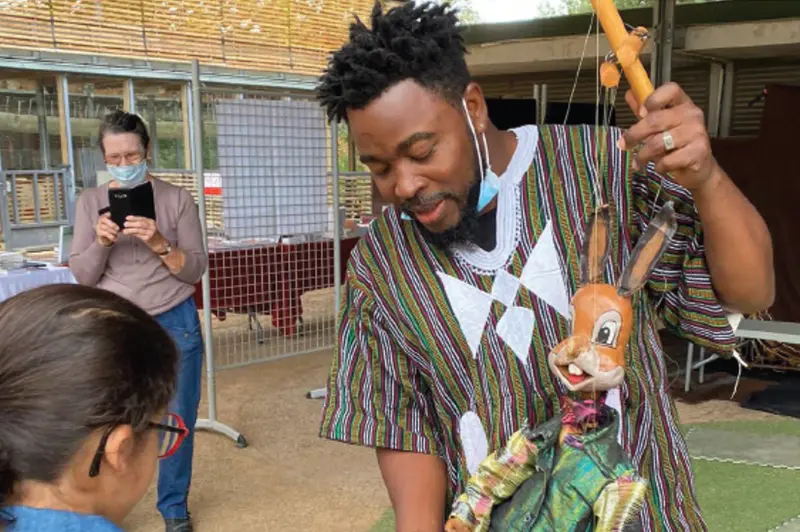 Eric Zongo, marionnettiste, venu du Burkina Faso pour vous présenter ses différents personnages et vous apprendra également à en fabriquer !