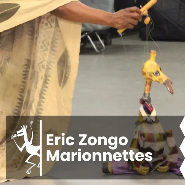 Eric Zongo, marionnettiste, venu du Burkina Faso pour vous présenter ses différents personnages et vous apprendra également à en fabriquer !